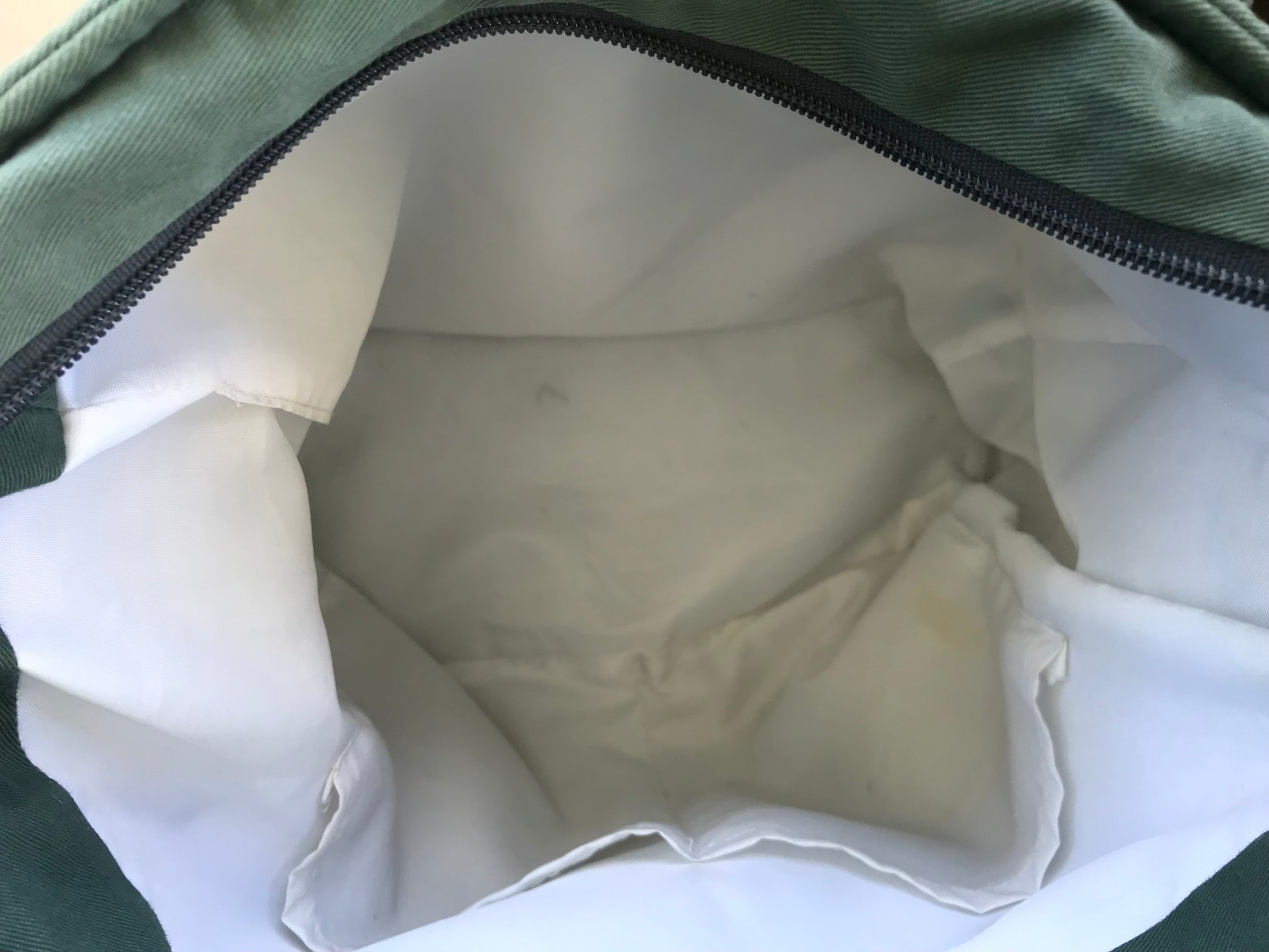 Quelques taches à l’intérieur du sac mais sinon très bon état extérieur. Pas de trou ni d’accroc . Lavé avant la vente