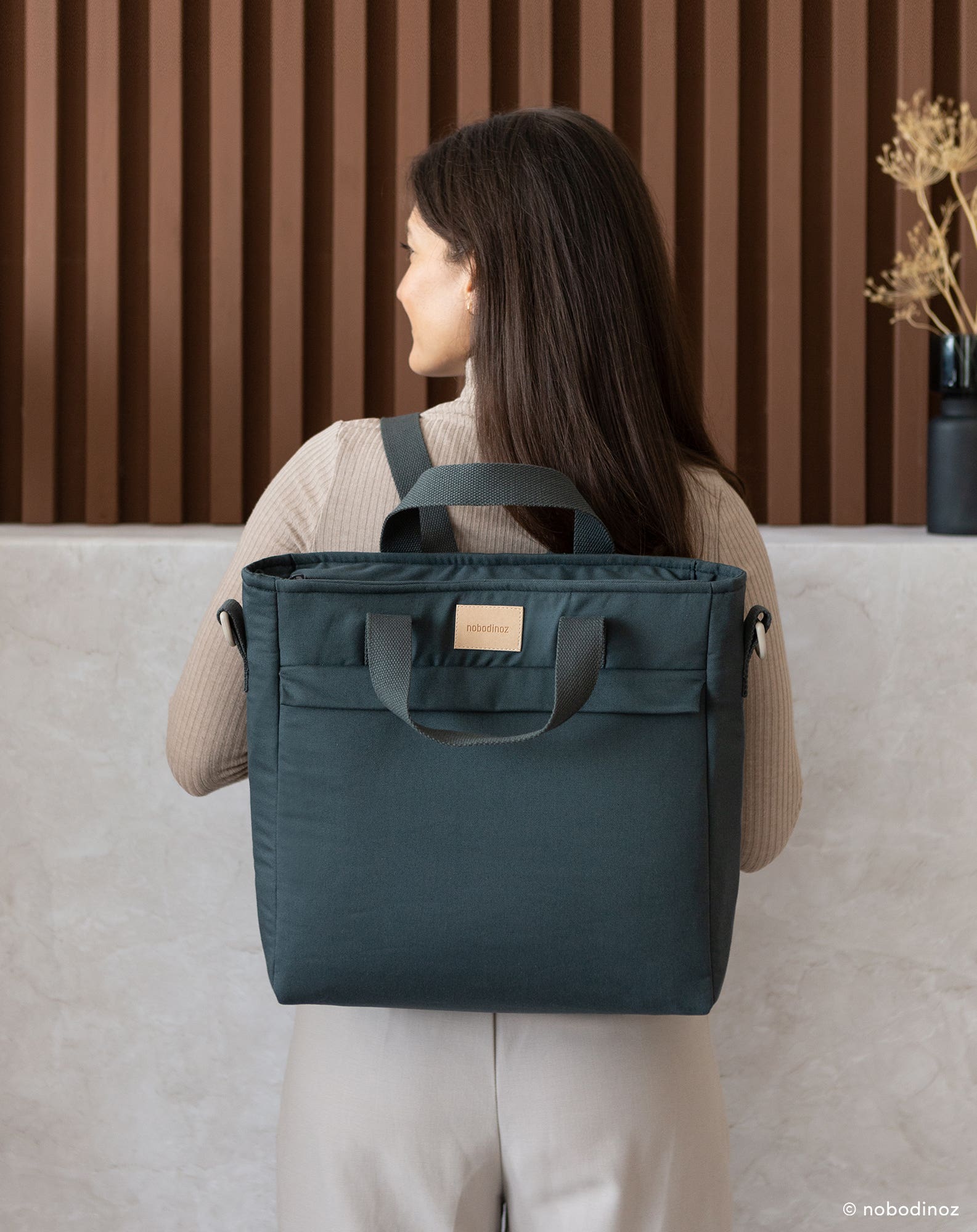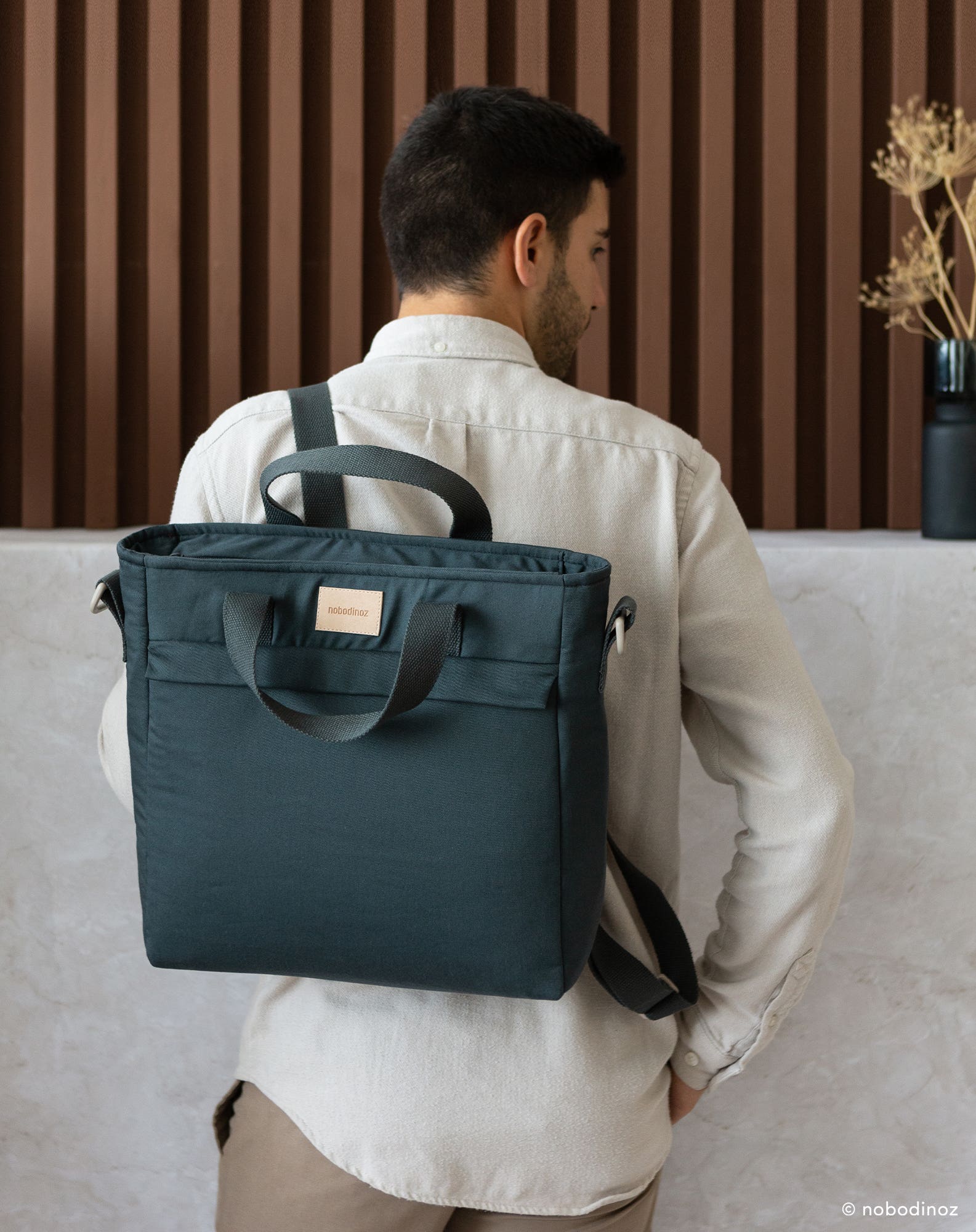 3 façons de le porter: à la main, sur le dos et sur la poussette grâce à ses attaches velcro ajustables et amovibles.
